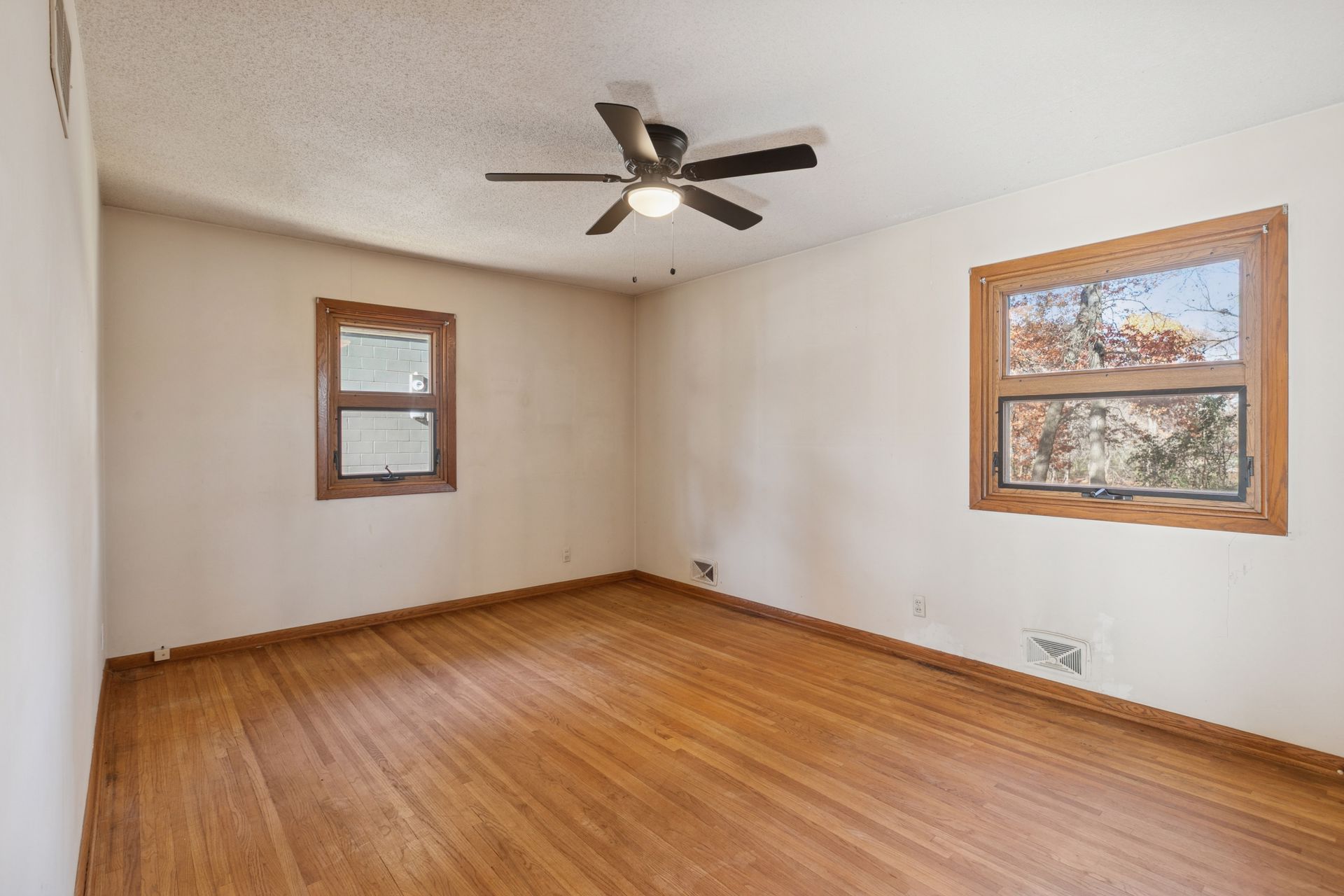 This charming 1959 home has been beautifully maintained and thoughtfully updated while preserving its original character. The main living areas feature new LVT flooring and baseboards, fresh paint, and a renovated kitchen with all-new custom enameled cabinetry, quartz countertops, and Samsung Smart Home appliances, blending classic design with modern convenience. The main floor family room is a standout, offering a warm, inviting space with lovely views of the backyard and pond. Step outside to one of the best lots in New Brighton, surrounded by mature trees and lush greenery. It’s a peaceful setting that feels tucked away from the city. Upstairs, you’ll find three nicely sized bedrooms and a full bath with its original mid-century charm intact. The lower level includes a spacious amusement room with a fireplace and a laundry area, adding flexibility and comfort to the home. Lovingly cared for and move-in ready, this home offers timeless appeal in a quiet, convenient location.